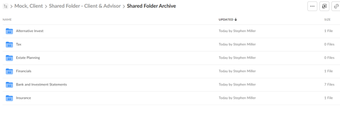 BOX: This is our secure digital file storage center. We save all important documents to each client's personal Box folder. You have access to these files, and you can upload and share any files from your computer onto the same Box folder. It's a great storage center for your financial organization, and it's beneficial for your spouse and beneficiaries.